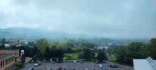 Горы из окна больницы и таймлапс облаков