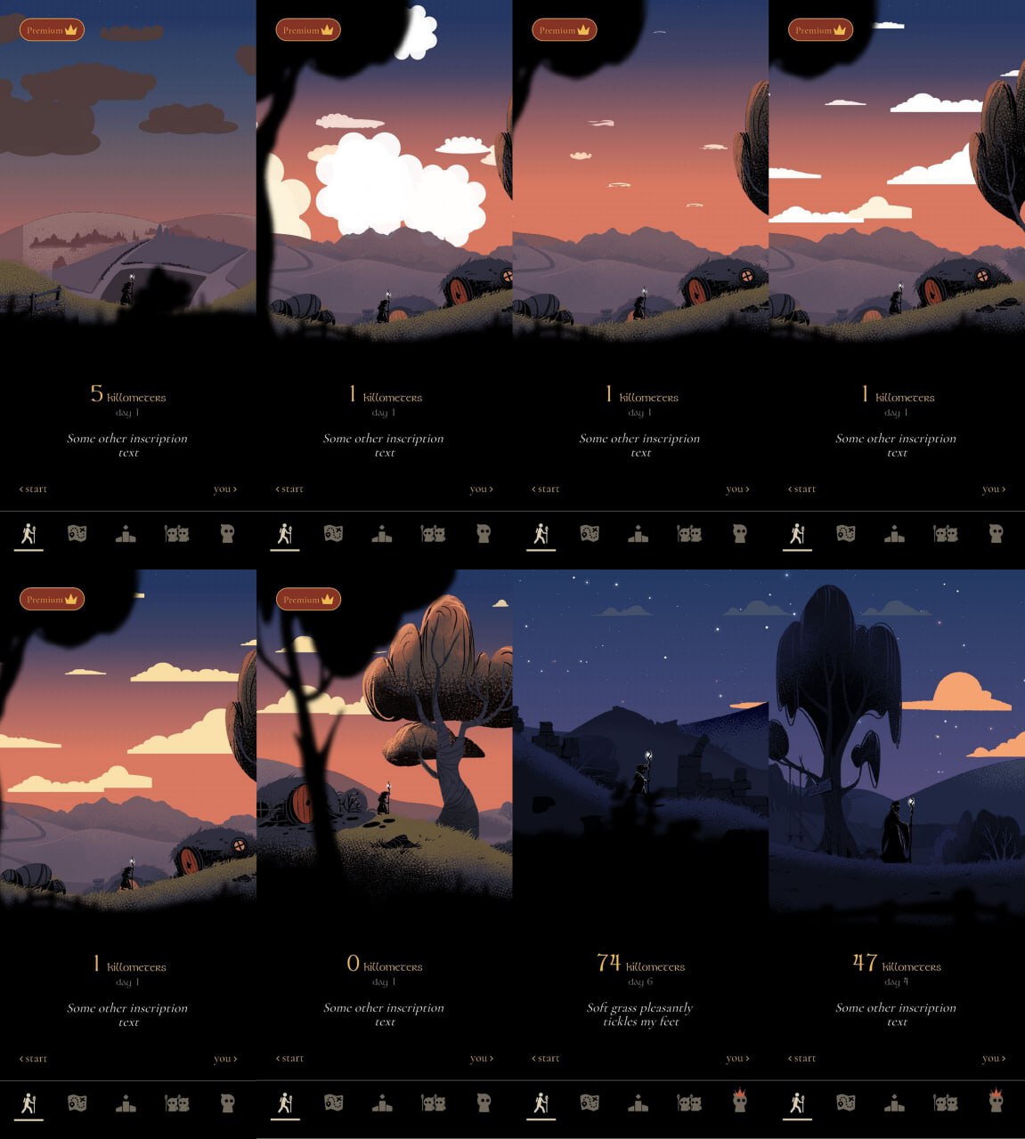 На картинке - эволюция моей генерации облаков и предфинальные версии звездного неба