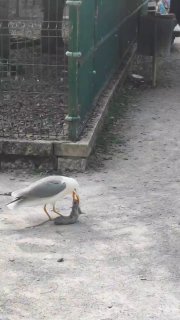 Видели как чайка убивала отползающего полудохлого голубя, проглатывала с 5й попытки куриное яйцо при родителях, а на днях заснял ещё одно убийство. Эти создания всех нас переживут.