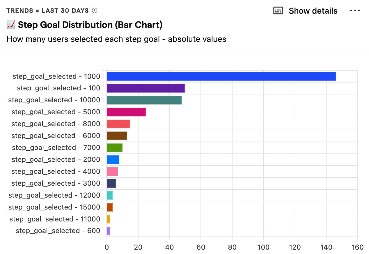 По реальным данным чаще всего выбирают цель 10 000 шагов. Это много. Миф про «10k = обязательно полезно» всё ещё жив. Надеюсь, у вас получается стабильно закрывать свою цель 🙂